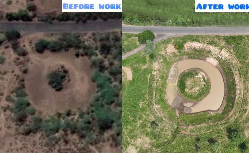 We rejuvenated three natural lakes at Tintoda village in Gandhinagar district. After the rainfall, the three lakes accumulated 15000 crore liters of water.